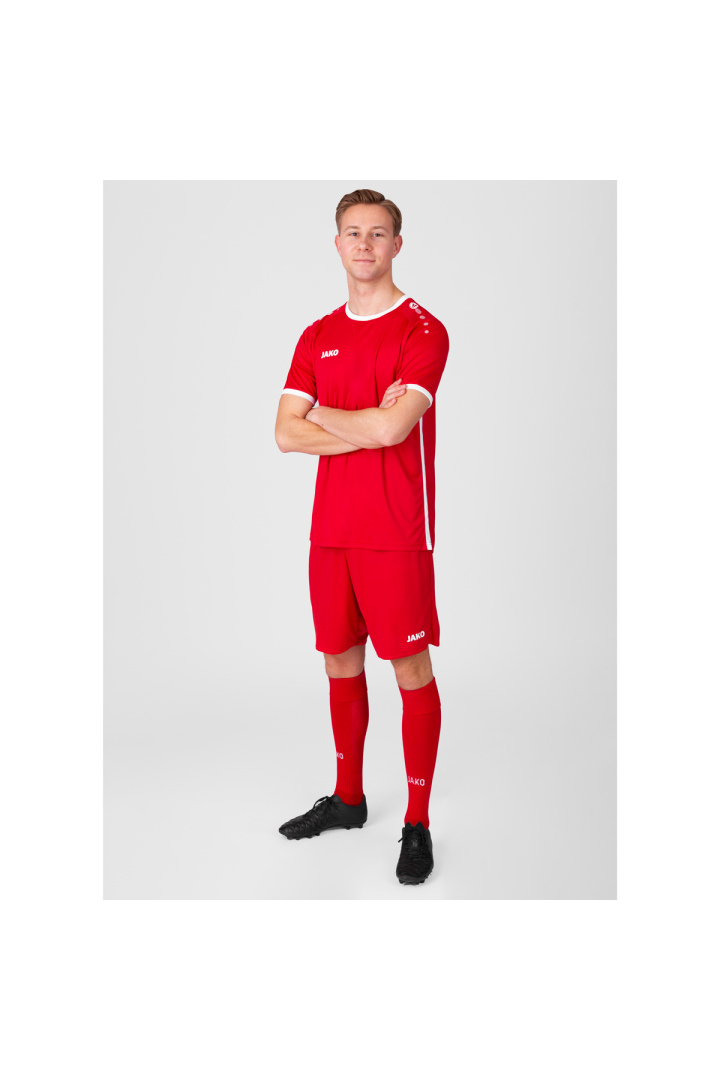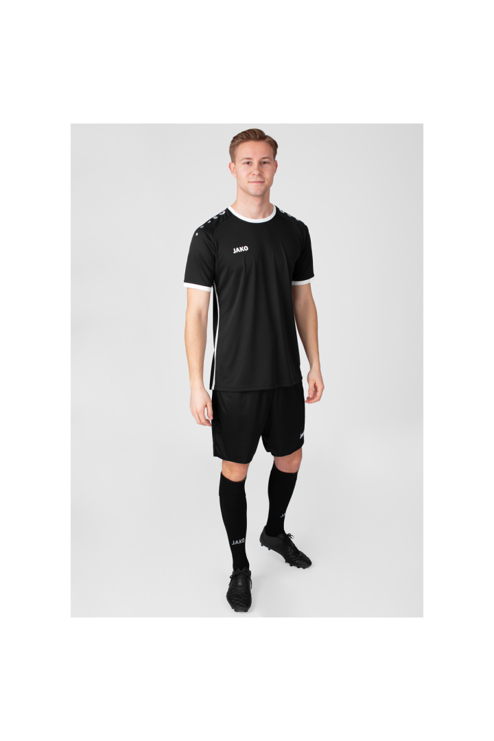 The JAKO Primera MC jersey is suitable for all clubs thanks to its minimalist design in twelve color variants. Contrasting side inserts in the sleeve and collar finish complete the picture. The polyester-interlock material is quick-drying and wicks moisture away from the body. You can easily combine the Primera short-sleeved jersey with the Manchester 2.0 shorts and Glasgow 2.0 socks to create a complete outfit for your entire team.