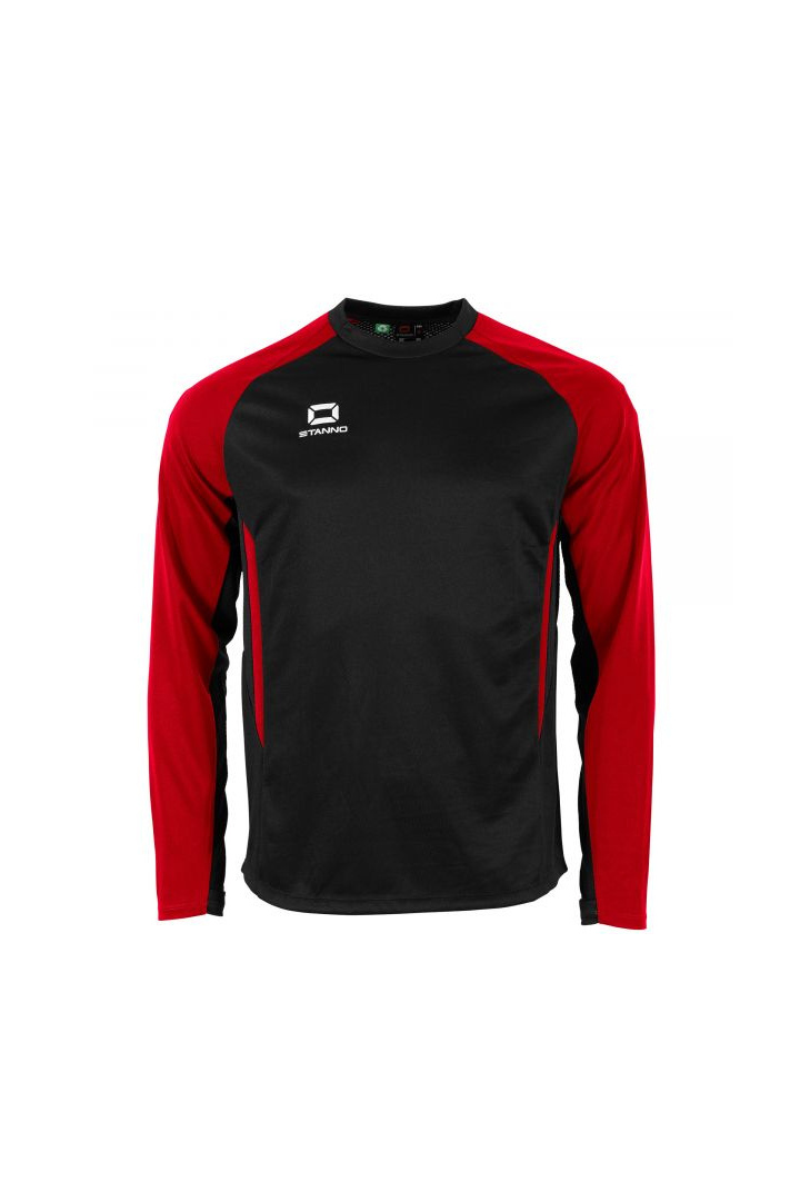 Découvrez le haut d'entraînement Stanno Stadio à col rond, un vêtement de sport conçu pour allier style, confort et performance. Issu de la collection Stanno Stadio, ce haut incarne l'esprit des fans et des athlètes, avec des logos distinctifs sur les épaules symbolisant le soutien inconditionnel des supporters.