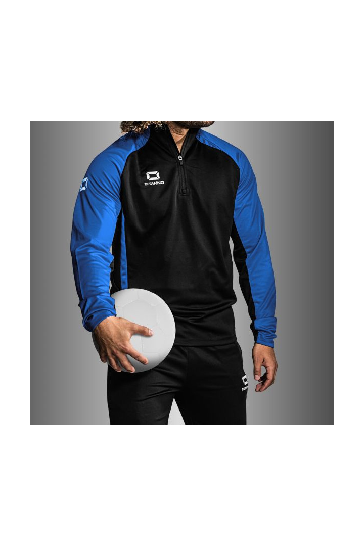 Découvrez le haut de sport Stanno Stadio Quarter Zip, un vêtement conçu pour allier style, confort et performance. Issu de la collection Stanno Stadio, ce haut incarne l'esprit des fans et des athlètes, avec des logos distinctifs sur les épaules symbolisant le soutien inconditionnel des supporters.