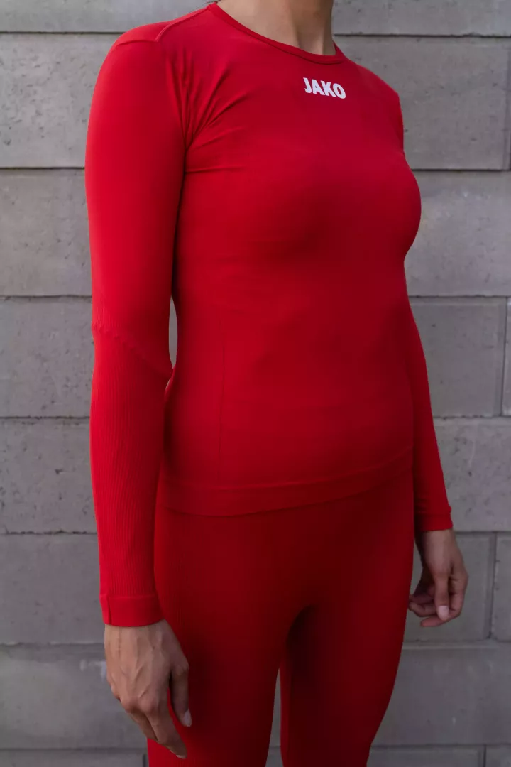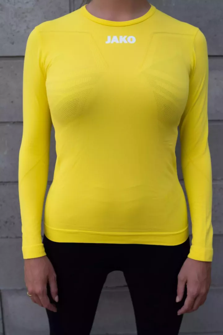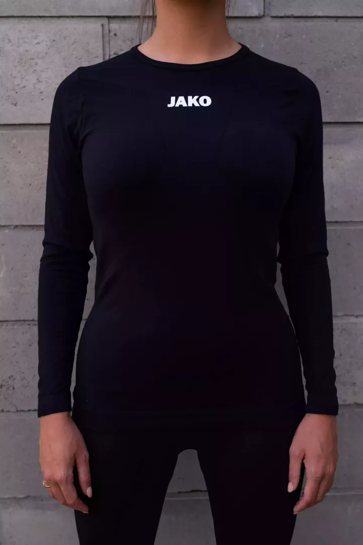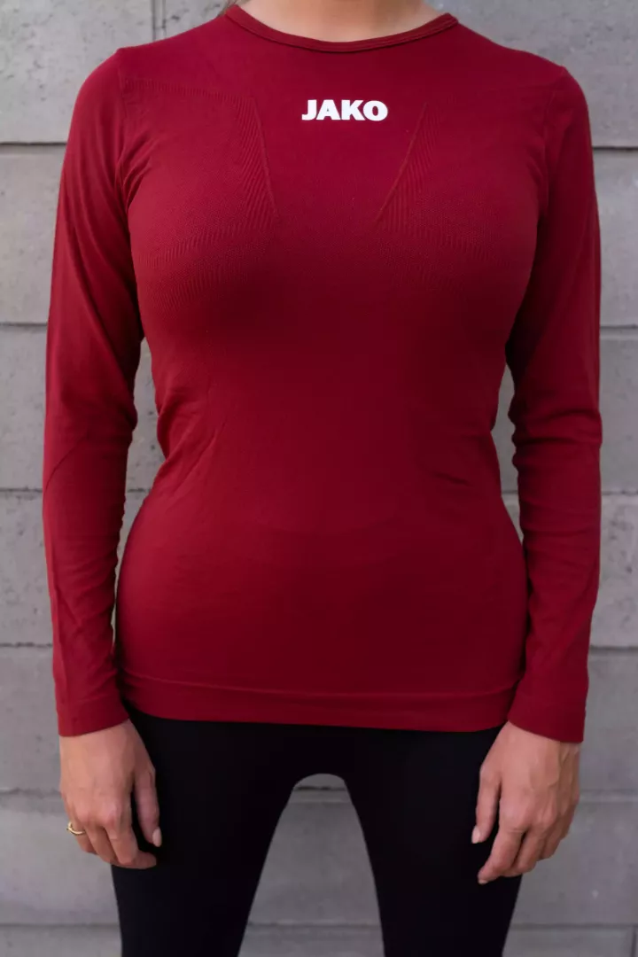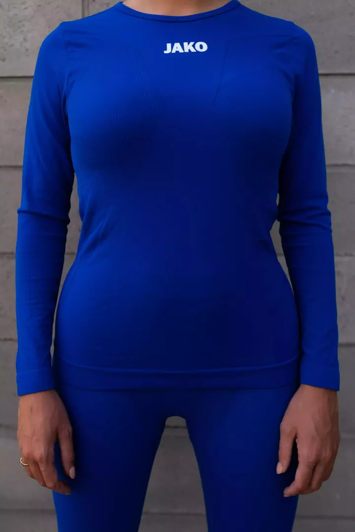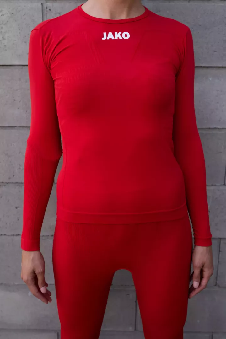 Le confort au service de la fonctionnalité, voici comment on pourrait décrire le maillot longues manches technique Comfort 2.0 de Jako. Il s'agit d'un sous-vêtement ajusté au corps mais sans coller. Il est conçu pour un entraînement ou un match de foot féminin disputé sans avoir à se soucier de la température ou du temps qu'il fait.
