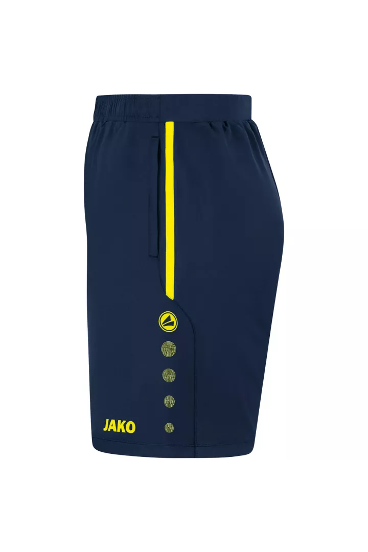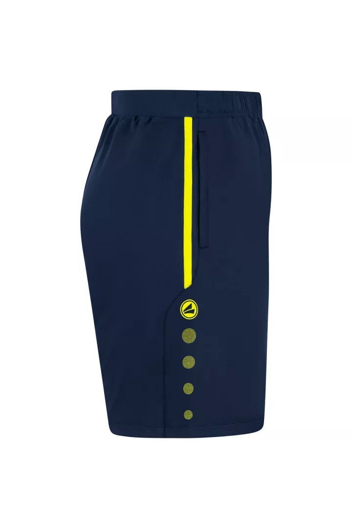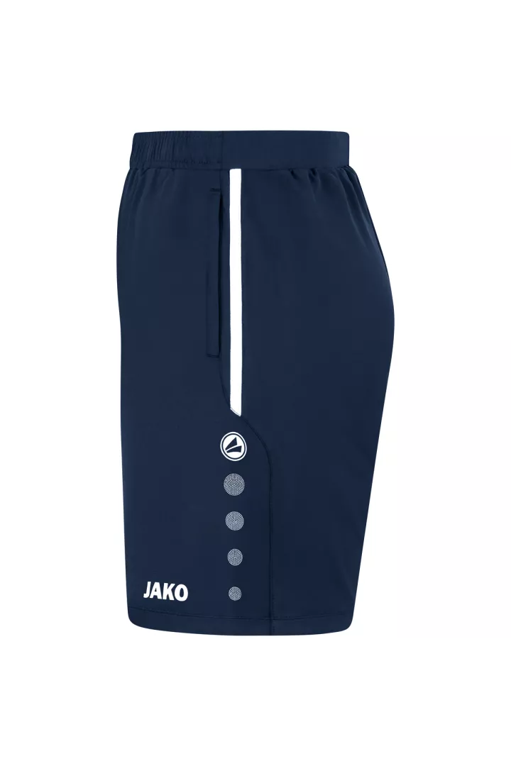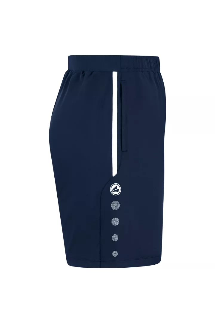 Le point fort du short d'entraînement JAKO Allround est la ceinture élastique en deux parties avec cordon de serrage. Ce bord assure une très bonne adhérence. Le short est composé de 90% de polyester recyclé et de 10% d'élasthane. Vous pouvez ranger vos objets de valeur dans les poches latérales avec fermeture éclair.