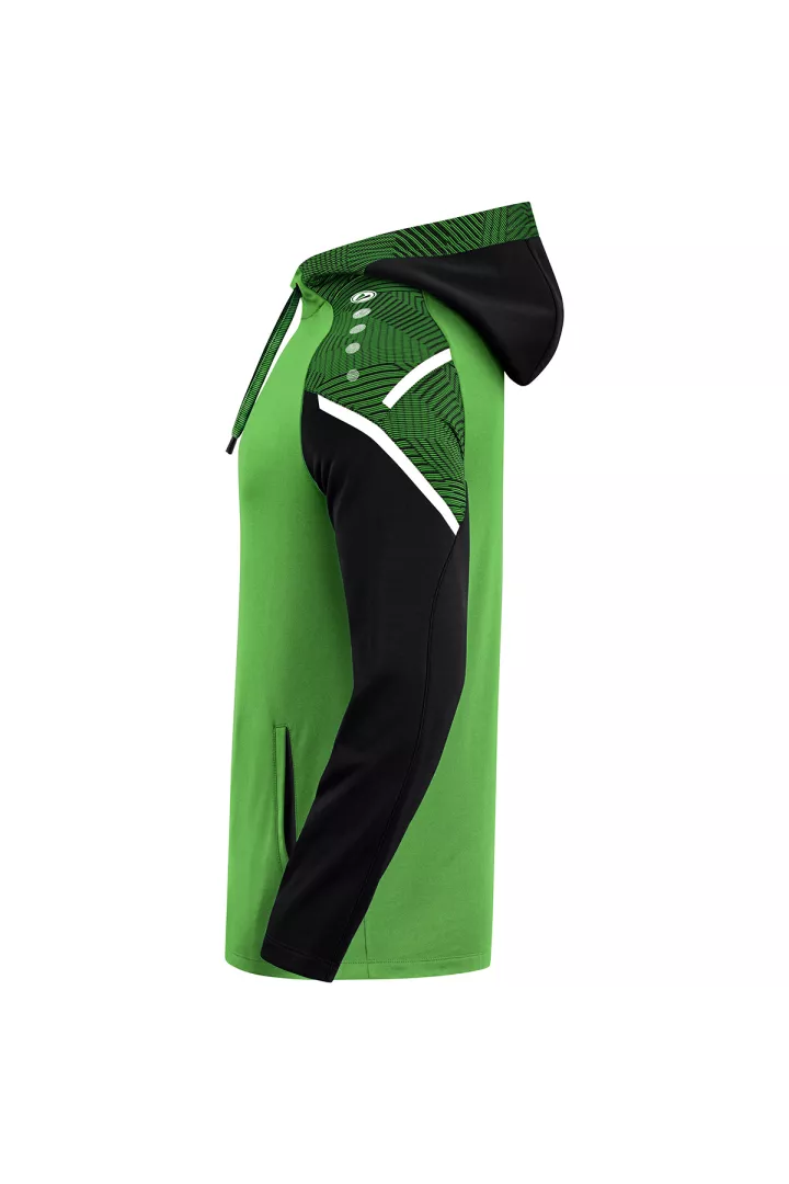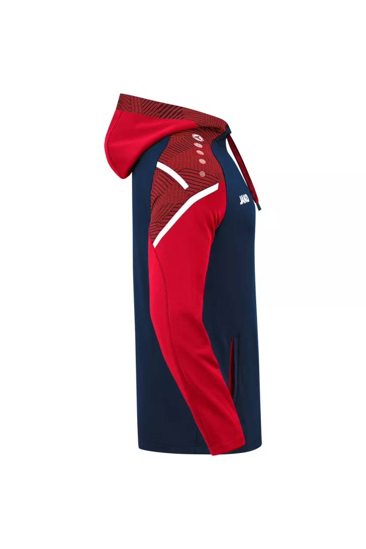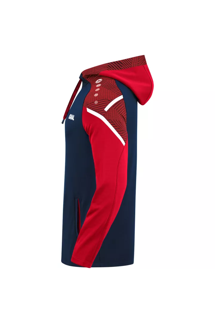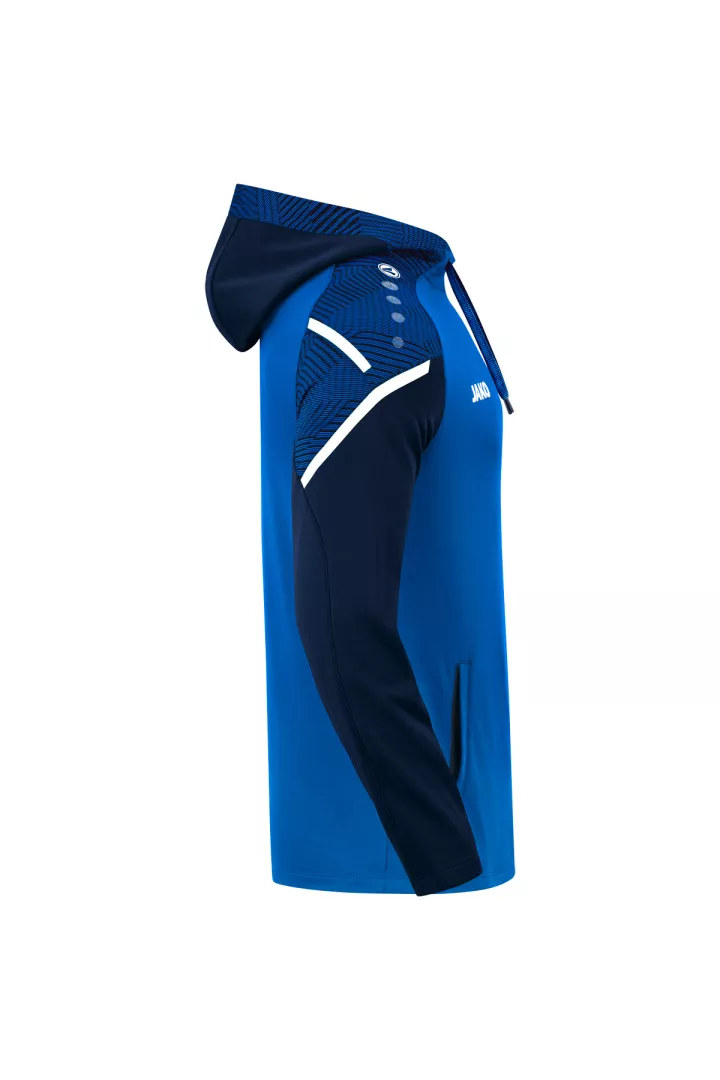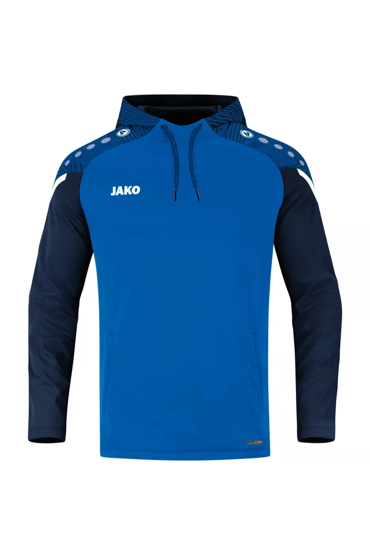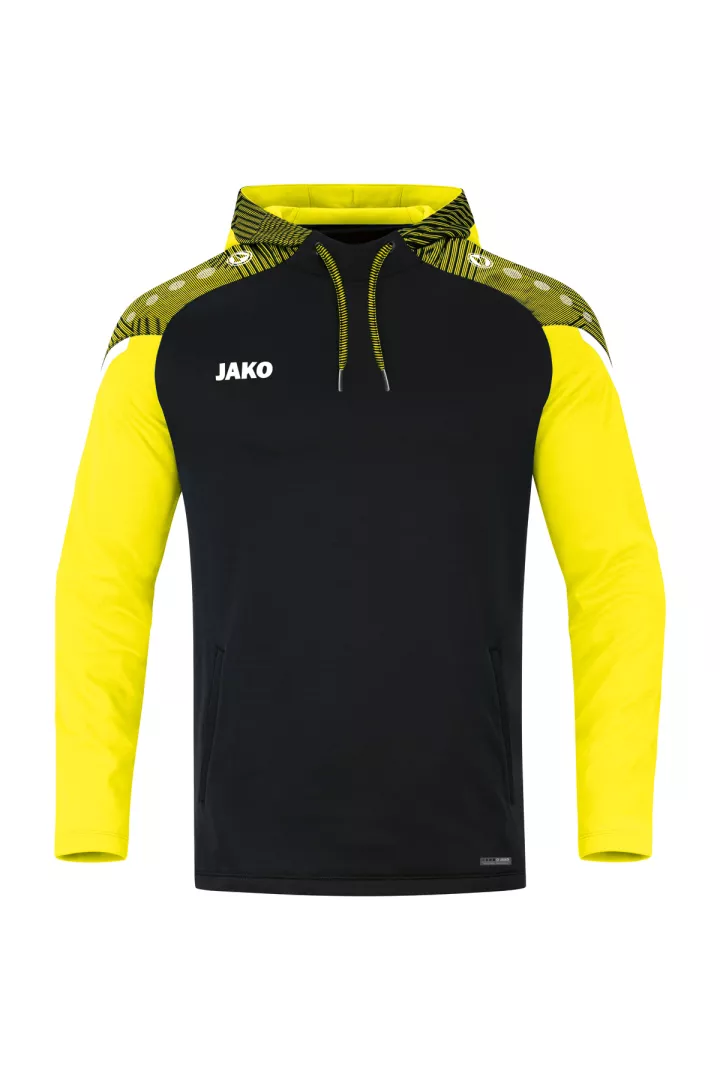 Le sweat à capuchon Performance de JAKO est composé à 100% de polyester recyclé. Le corps est doté d'un polaire doux à l'intérieur. Les éléments de design en jacquard typiques de la teamline Performance sont visibles sur l'insertion aux épaules et sur le capuchon. Les autres points forts de ce sweat à capuchon durable sont le cordon de serrage et le tape contrastants sur les épaules ainsi que les poches latérales. Sans cordon dans les tailles enfants.