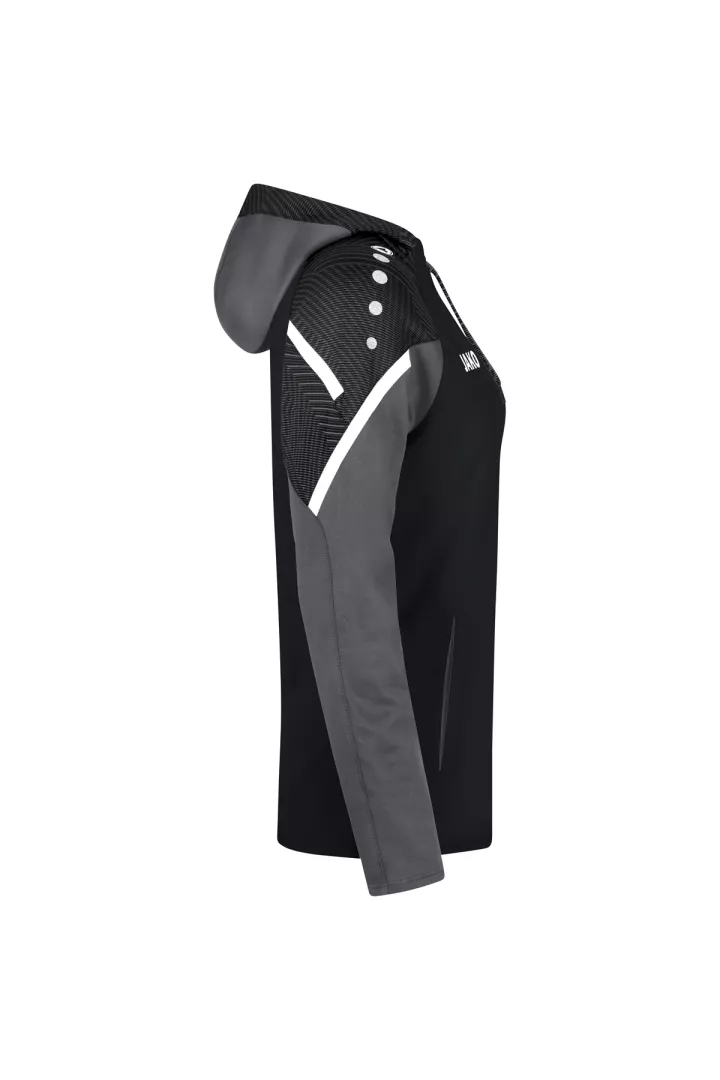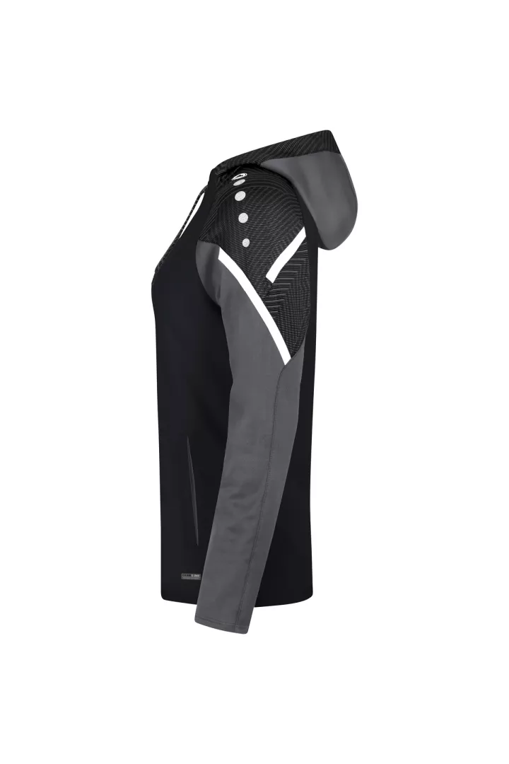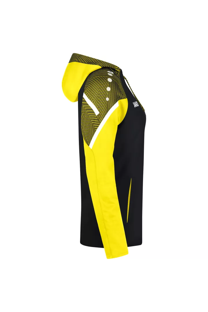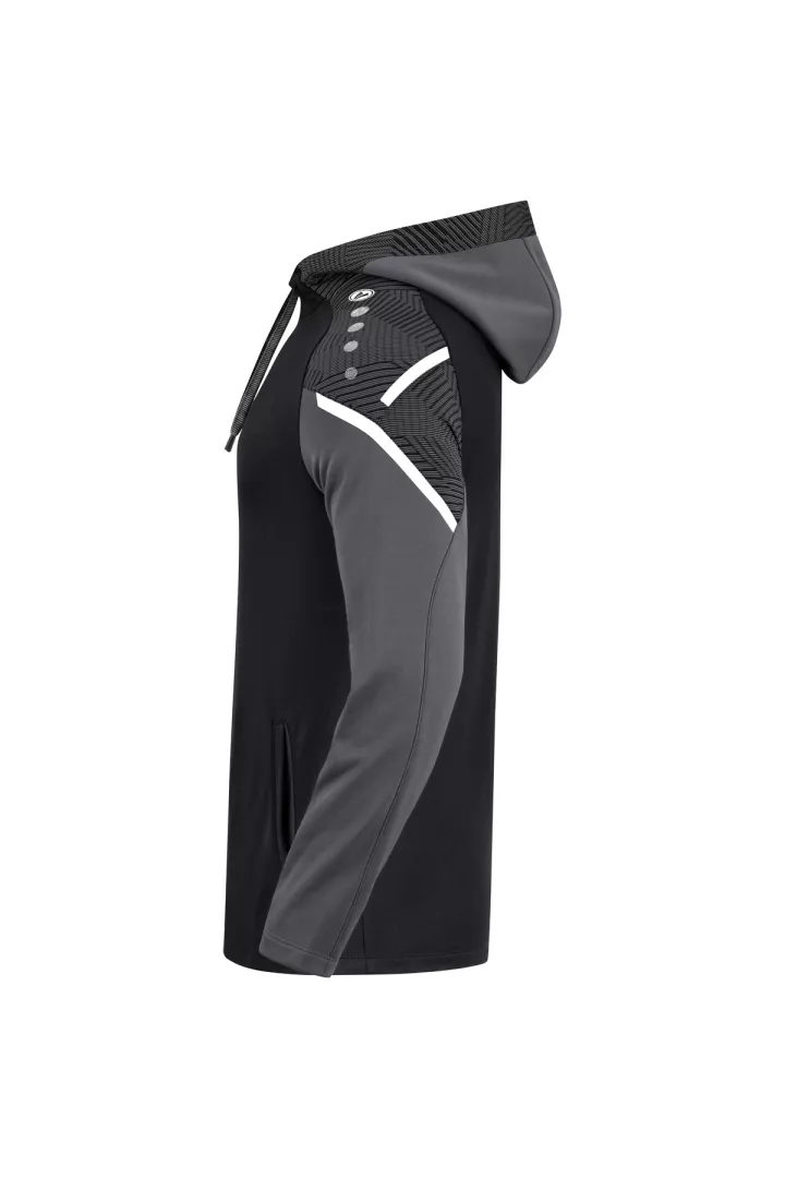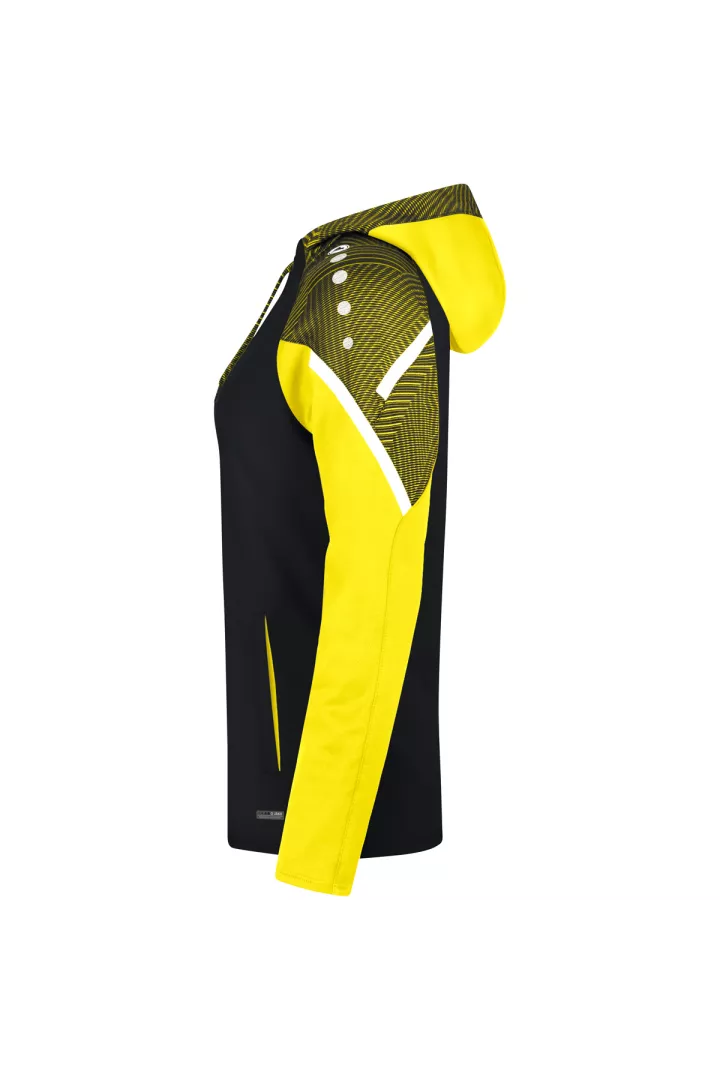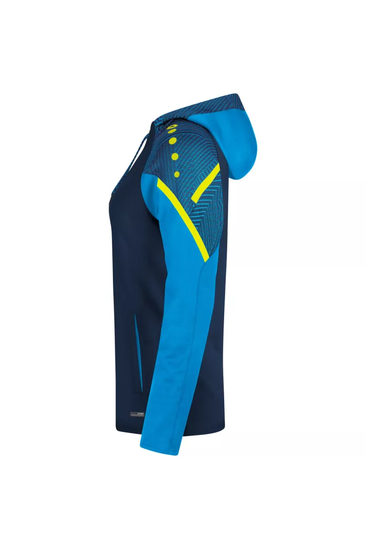 Le sweat à capuchon Performance de JAKO est composé à 100% de polyester recyclé. Le corps est doté d'un polaire doux à l'intérieur. Les éléments de design en jacquard typiques de la teamline Performance sont visibles sur l'insertion aux épaules et sur le capuchon. Les autres points forts de ce sweat à capuchon durable sont le cordon de serrage et le tape contrastants sur les épaules ainsi que les poches latérales. Sans cordon dans les tailles enfants.